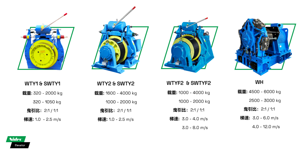 • 5500KG सम्मको अधिकतम लोड क्षमता र 3m/s को अधिकतम लिफ्ट गतिको साथ, विभिन्न कर्षण अनुपात योजनाहरूले 2500KG देखि 5500KG सम्मको लोड आवश्यकताहरू कभर गर्दछ।